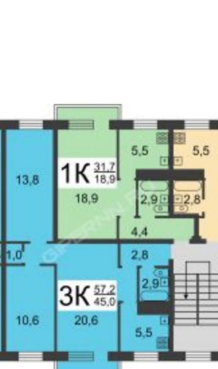 2-к кв. Нижегородская область, Нижний Новгород Светлогорский пер., 4 (56.0 м²)