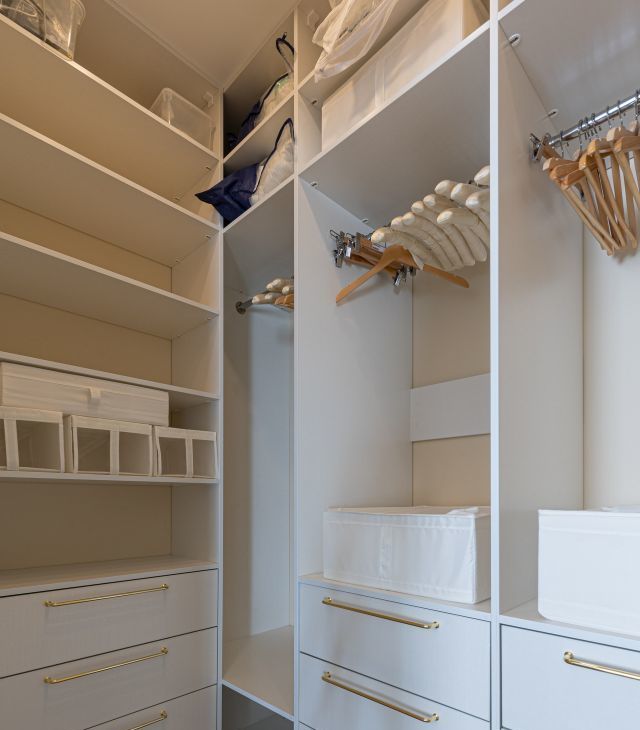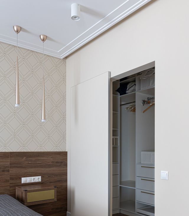 Две изолированных комнаты и большая общая зона. Отдельная кладовая. Гардеробная в одной из спален.