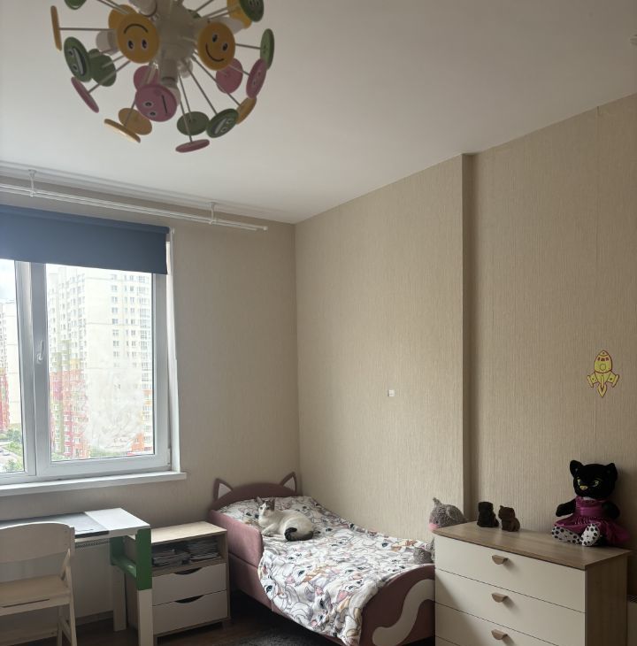 -х комнатная квартира с дизайнерским ремонтом в ЖК цветы. Мы специально объединили гостиную и кухню, чтобы получить пространство для встреч всей семьёй и с друзьями, потому что большую часть времени мы проводим именно в гостиной. В квартире 2 независимые спальни - мастер спальня и детская. Большая гардеробная. Раздельные сан-узлы, там где туалет дополнительно установлена раковина. Установлена огромная душевая кабина с функцией хамам. В кухне есть духовой шкаф, индукционная панель, вытяжка, микроволновка, посудомоечная машина и холодильник. Квартира продаётся полностью с мебелью. Причина продажи - нужна квартира большой площади, потому что дети разнополые. Квартира не в ипотеке. Торг возможен. Продажа срочная, потому что подобрали квартиру на переезд.