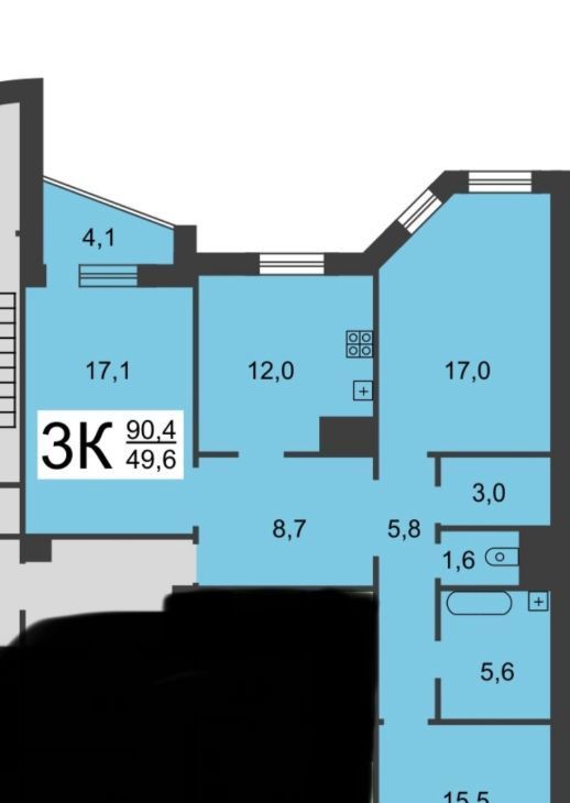 3-к кв. Нижегородская область, Нижний Новгород ул. Богдановича, 2к1 (90.0 м²)