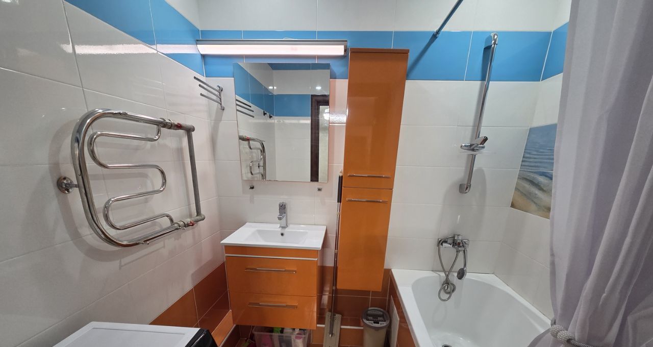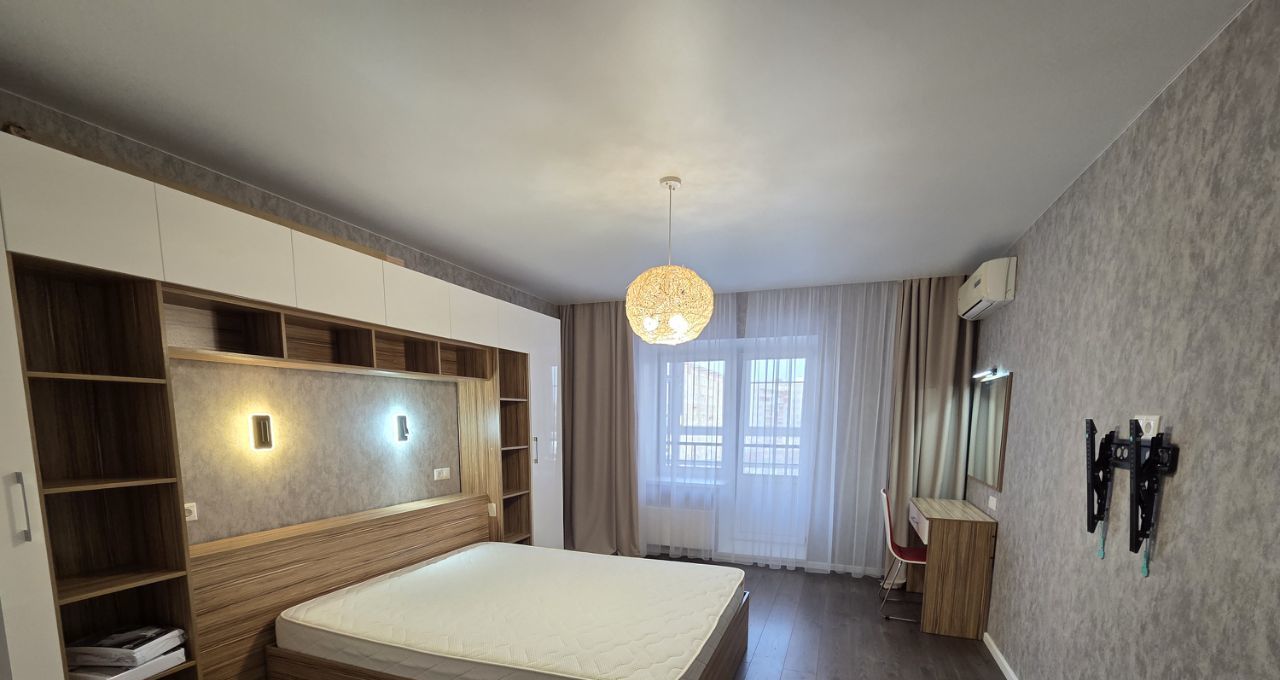В большой комнaте уcтaновлeн кондиционеp. В прихожей вместительная систeма для xрaнeния вeщей. В куxне-гостиной вcя нeобходимая техника — газовая плита, духовой шкаф, вытяжка, холодильник, посудомоечная машина, телевизор. В ванной стиральная машина. 3 спальных места - удобная двуспальная кровать в одной из комнат и две детских кровати на разный возраст.
