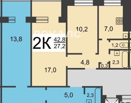 В квартире есть лоджия и балкон