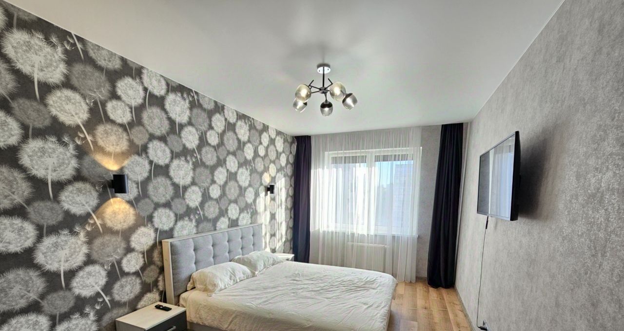 В квартире оборудованы взрослая спальня, гостиная, кухня-столовая, третья комната в данный момент без мебели.
