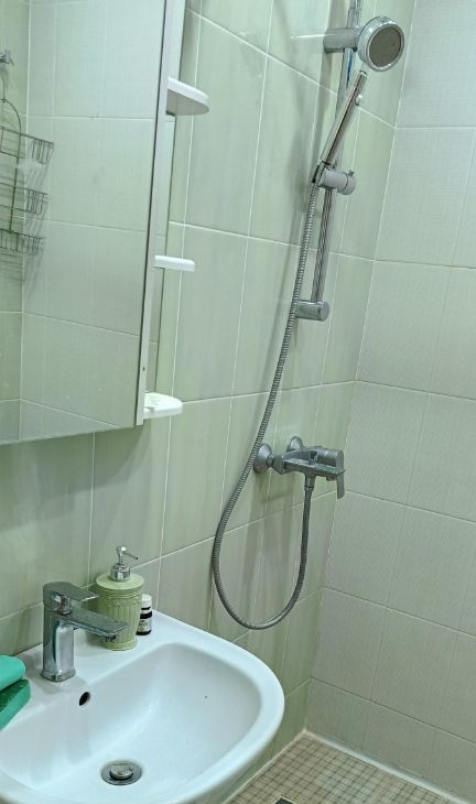 Раздельный санузел в кафеле .На кухне установлен кухонный гарнитур ,холодильник,стиральная машина .