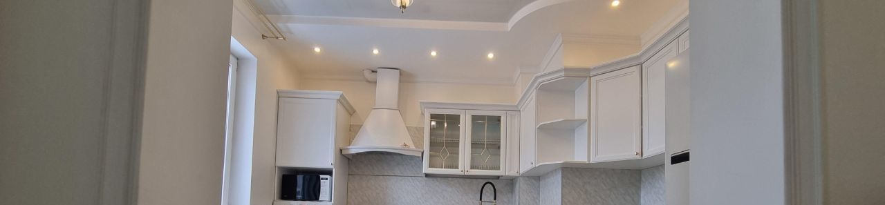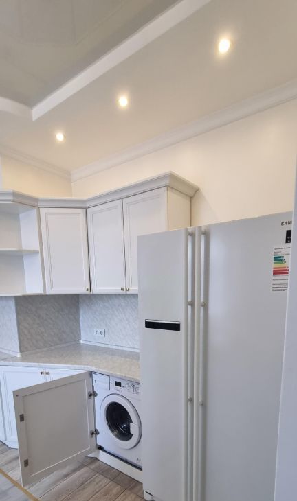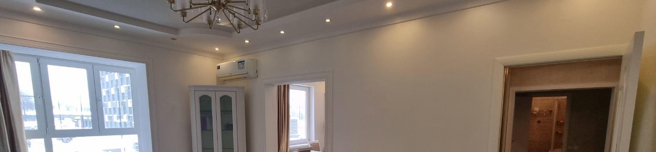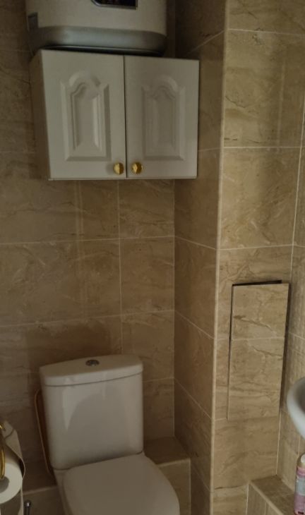 Хороший ремонт, большая гостинная совмещенная с просторной кухней, спальня, детская для двоих детей, 2 туалета, ванна-джакузи. Квартира оснащена всей бытовой техникой ( стиральная и посудомоечная машины, микроволновая печь, большой холодильник, в двух комнатах кондиционеры и т.д. ).