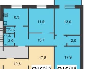 3-к кв. Нижегородская область, Нижний Новгород Красноуральская ул., 1А (70.4 м²)