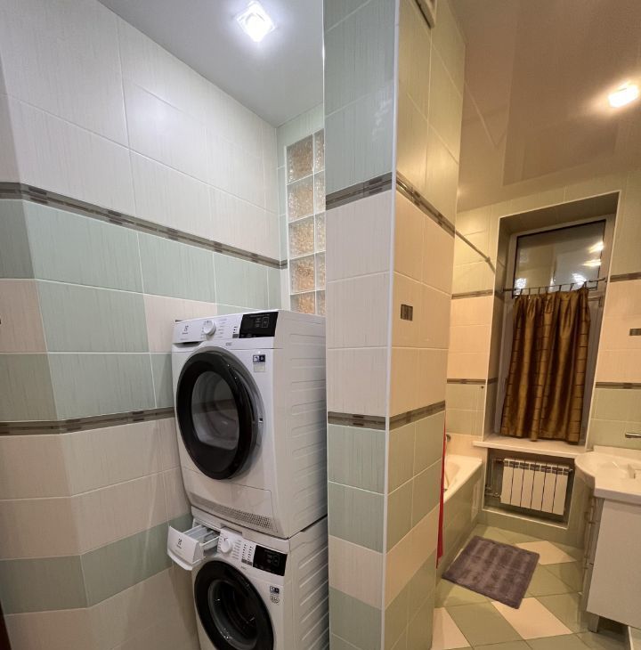 * Вся необходимая встроенная техника (холодильник, духовка, варочная панель, посудомоечная машина), а также сушильная машина.