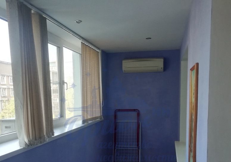 Утепленная лоджия на два окна (9 кв.м) с видом на ухоженный двор и деревья.