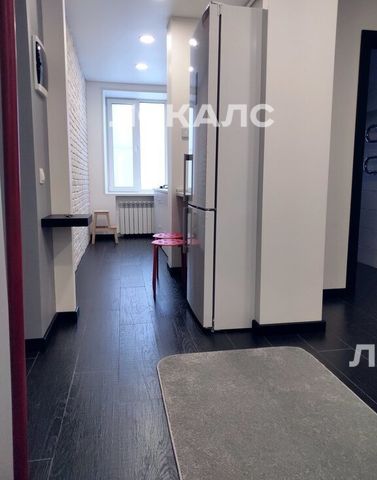 Лаконичная кухня оснащена современной варочной панелью, холодильником, стиральной машиной, новой сантехникой.