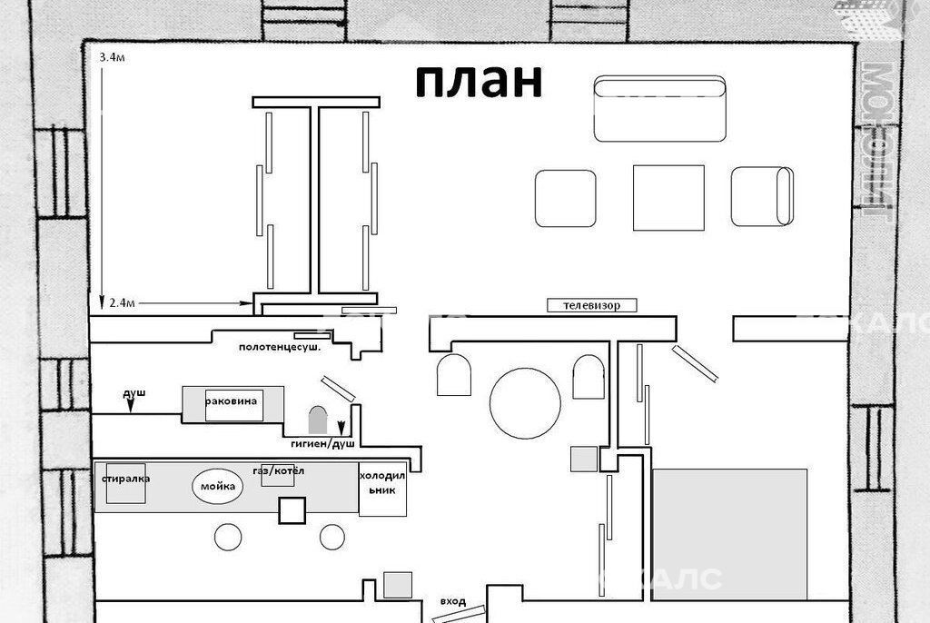 3-комнатная квартира: Нижний Новгород, Бурнаковская улица, 111 (57 м²)