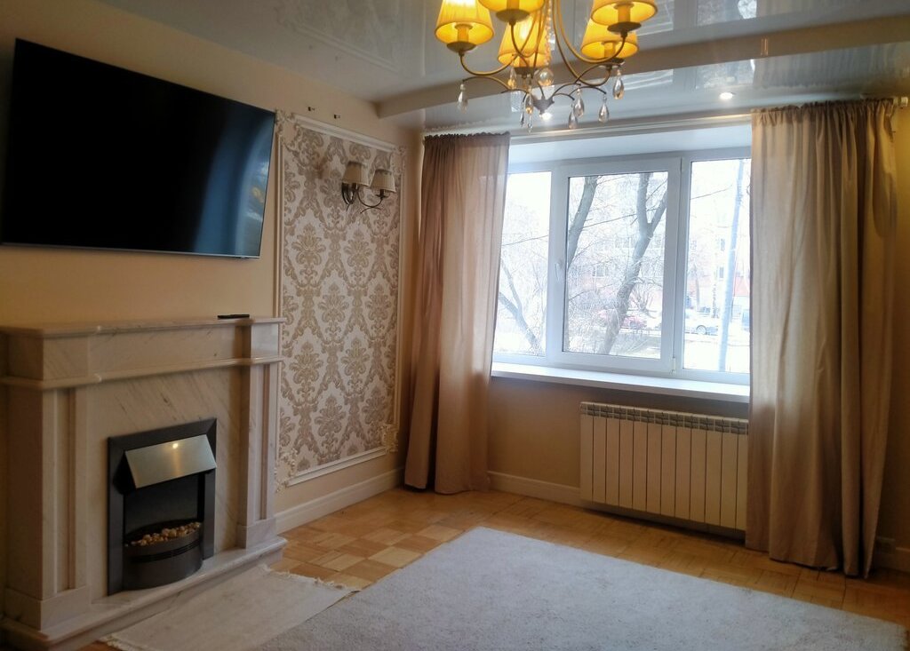 В квартире выполнен косметический ремонт, она полностью готова для комфортного проживания. В наличии вся необходимая техника, включая холодильник, телевизор , камин и стиральную машину. Мебель на кухне и в комнатах позволяет сразу же заселиться. Санузел совмещённый, есть ванна. Окна выходят как на улицу, так и во двор, что обеспечивает много света в течение дня. Также есть лоджия и балкон, где можно отдохнуть и наслаждаться свежим воздухом.