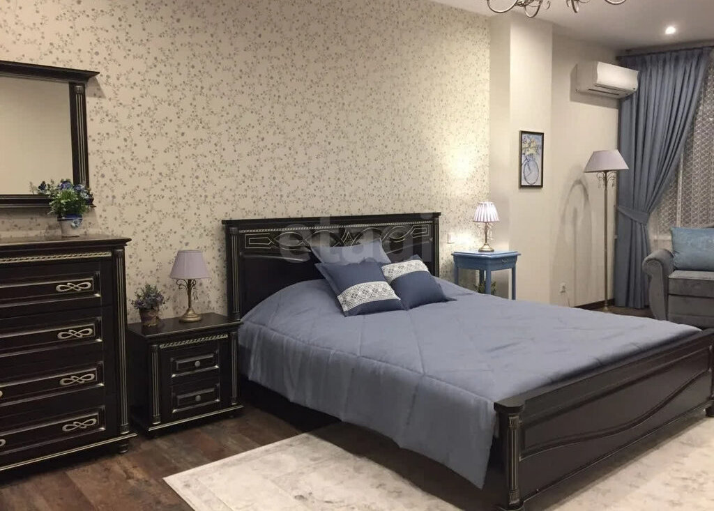 Всё необходимое: посуда, постельное, техника, вместительные шкафы, три телевизора, посудомоечная машина, три кондиционера. Окна и лоджия выходят на зелень — очень тихо и красиво.