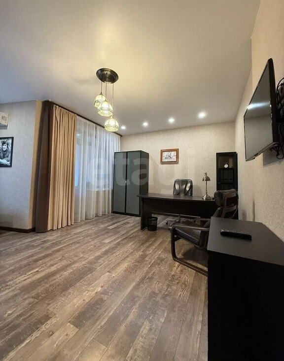 Просторный кабинет с лоджией, уютная спальня с хозяйским санузлом, большая кухня-гостиная, гостевой санузел с душевой, гардеробная и хозяйственная комната.