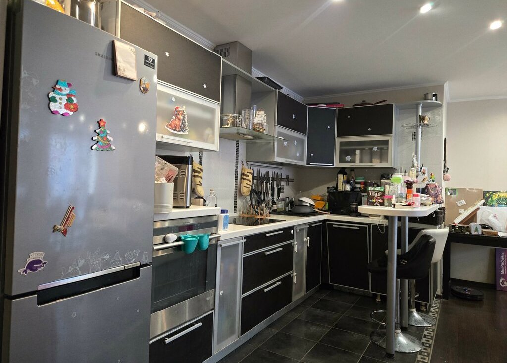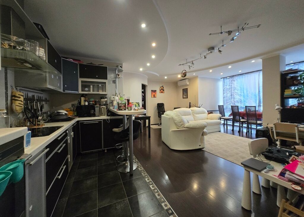 В квартире остается вся мебель и бытовая техника .В квартире установлены 2 кондиционера и теплые полы .