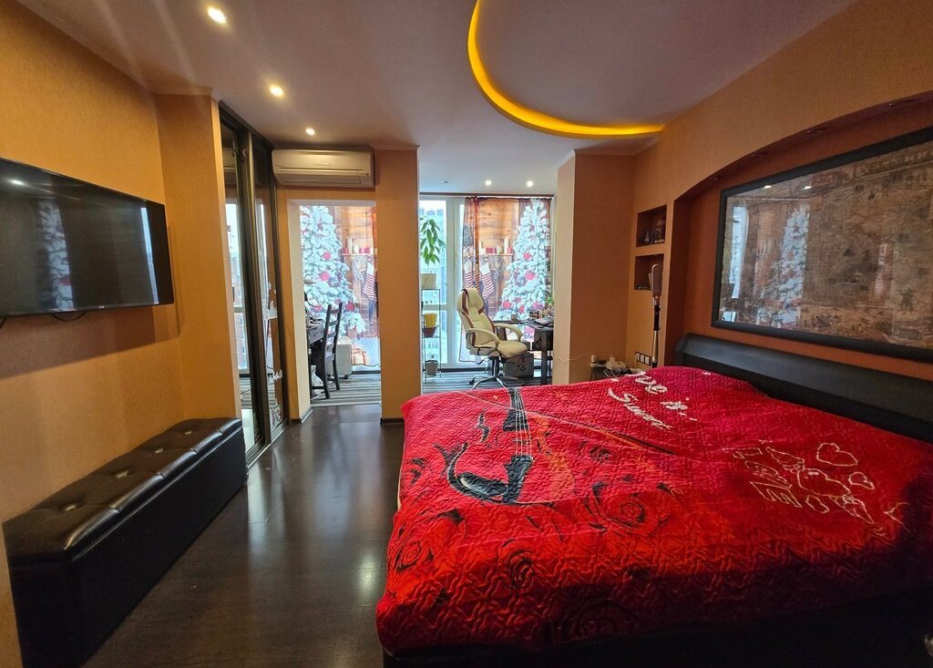 Квартира расположена на 7 этаже 10 этажного здания 2007 года постройки .В квартире выполнена перепланировка , жилая площадь квартиры увеличена за счет лоджии с панорамным остекленением .Из окон открывается красивый вид как на улицу , так и во двор , на обе стороны .Просторная кухня гостиная, квартира с двумя изолированными комнатами это спальня и детская комната .Два санузла : душевая с уборной + джакузи с уборной .Высота потолков 2, 7 . В квартире выполнен дизайнерский ремонт который придает уют и стиль .Все комнаты оснащены качественной мебелью и современной техникой , что позволит вам сразу переехать без дополнительных забот и обживаться .