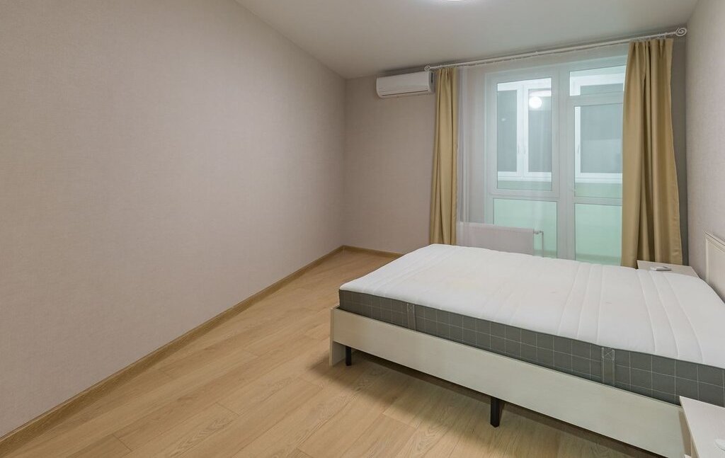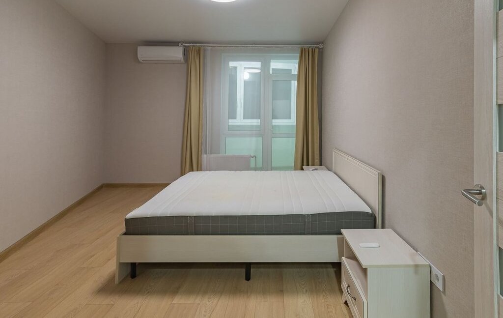 - В спальне №1 есть кондиционер, установлена большая кровать размером 160*200 с удобным матрасом от IKEA, прикроватные тумбочки и доступ к балкону.