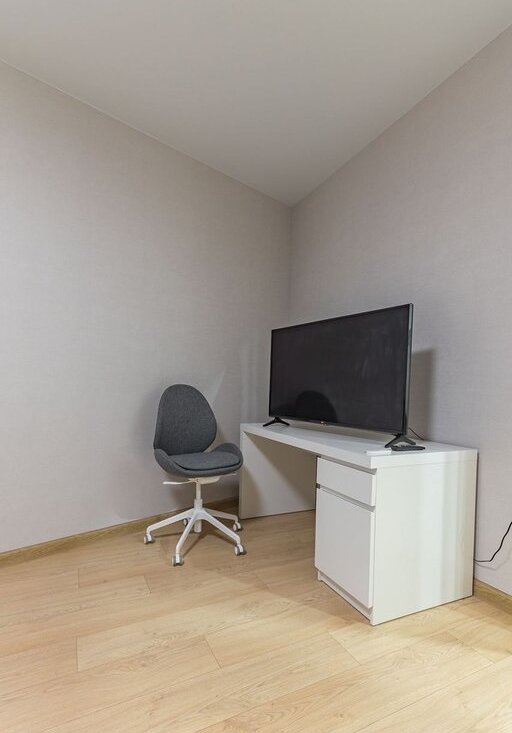 - Спальня №2 оборудована кроватью размером 140*200, матрасом, стеллажом, компьютерным столом и стулом. Также в комнате имеется телевизор.