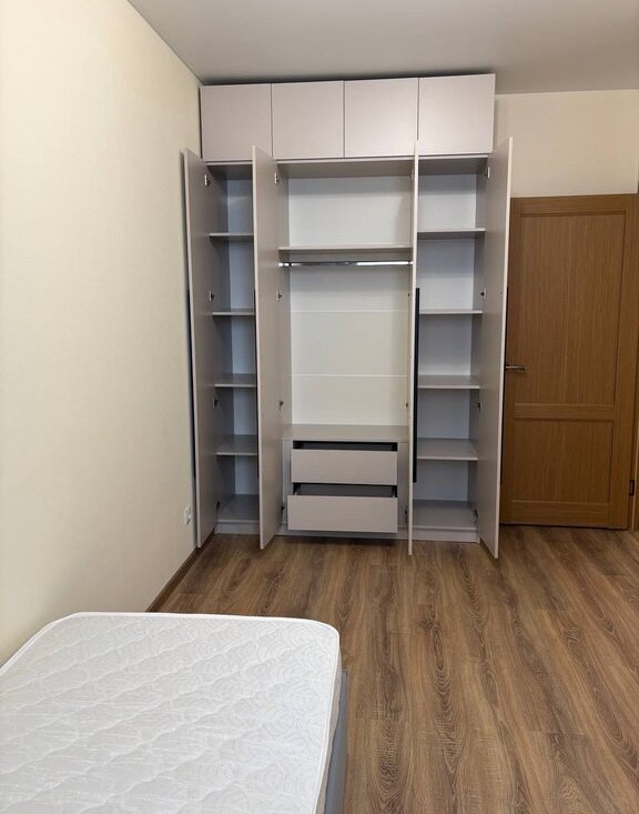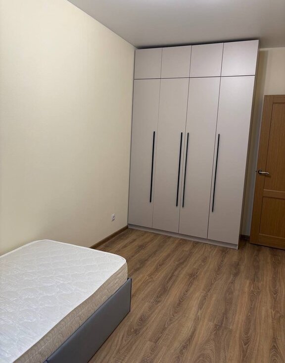 1 комната: 1,5 спальная кровать и матрас, установлен большой, вместительный шкаф