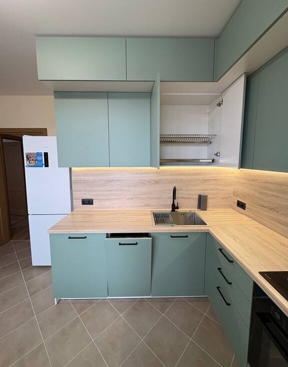 Кухня: Полностью укомплектована новой техникой: варочная панель, вытяжка, духовой шкаф, холодильник, посудомоечная машина.