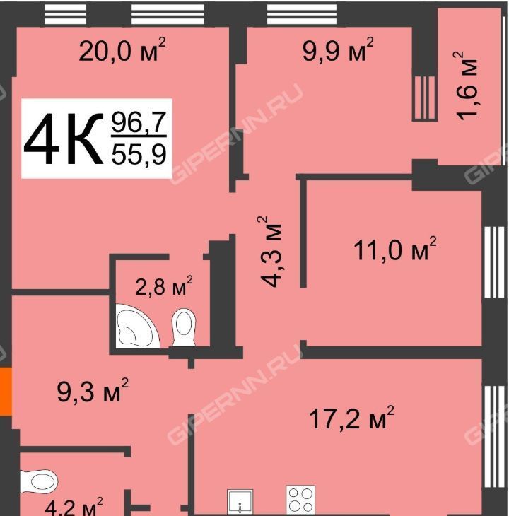 4-комнатная квартира: Нижний Новгород, проспект Героев Донбасса, 1 (97 м²)