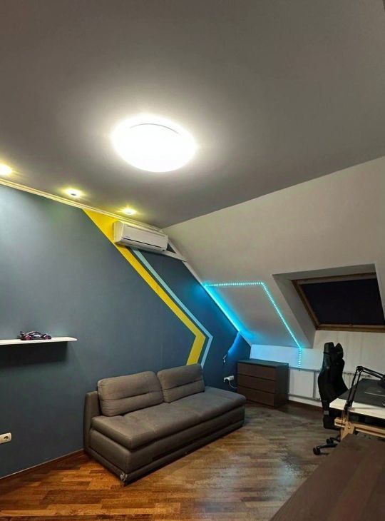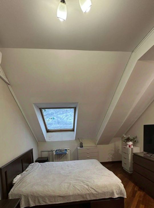 Две спальни по 15 м² с мансардными окнами — лежишь и видишь небо, дождь или звёзды.