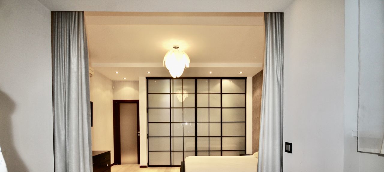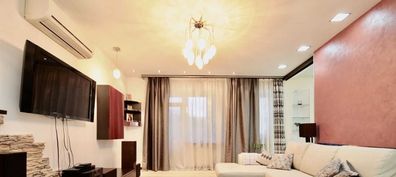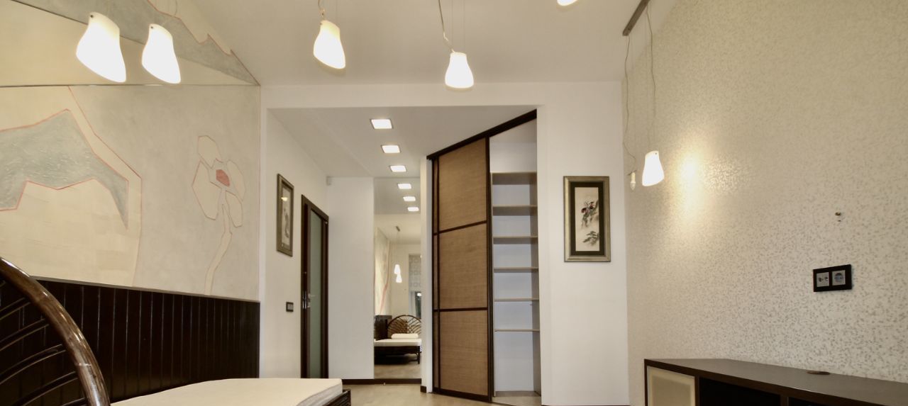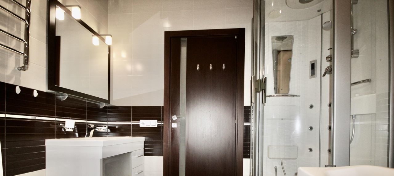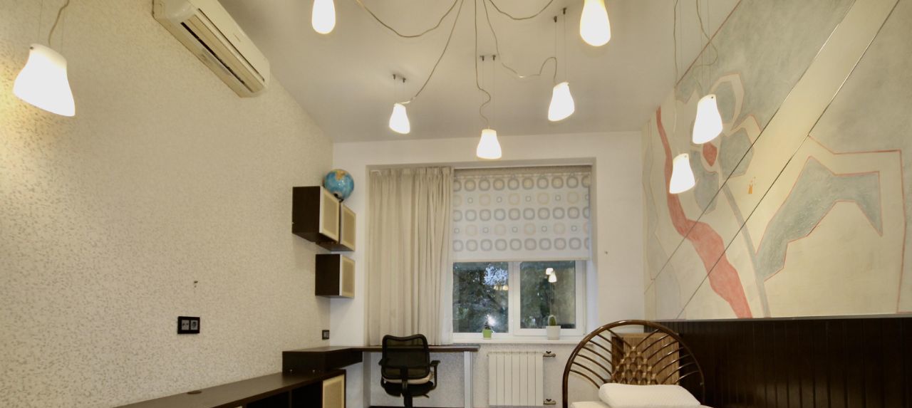 Ремонт в квартире делали для себя, хорошо продумано освещение и коммуникации. Квартира укомплектована всей необходимой мебелью и техникой, полный комплект кухонных принадлежностей. В каждой зоне установлен кондиционер, есть посудомоечная машина. В ванной комнате находится бойлер, ванна и душевая кабина.