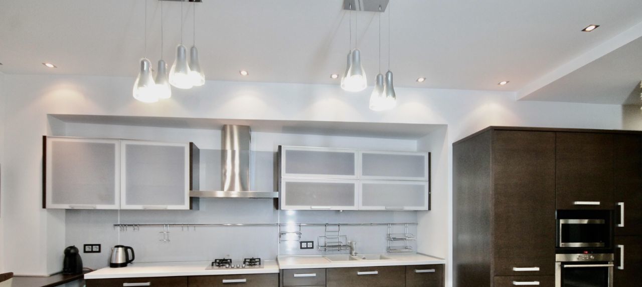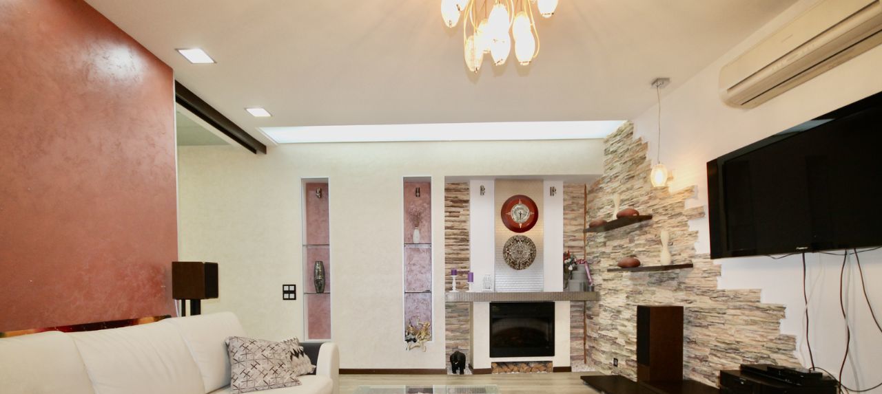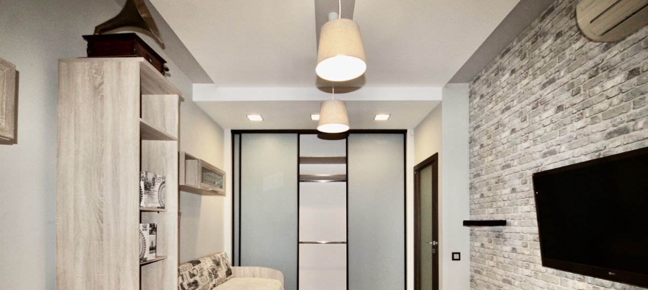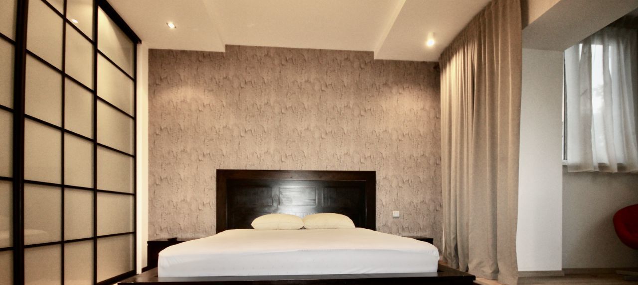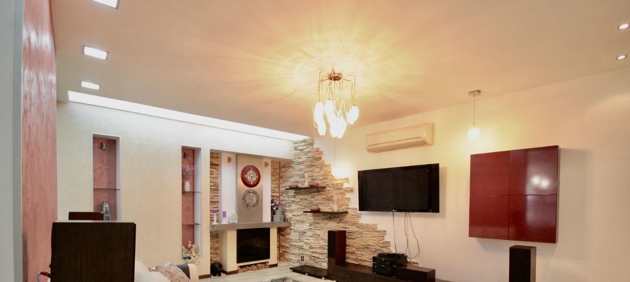 Ремонт в квартире делали для себя, хорошо продумано освещение и коммуникации. Квартира укомплектована всей необходимой мебелью и техникой, полный комплект кухонных принадлежностей. В каждой зоне установлен кондиционер, есть посудомоечная машина. В ванной комнате находится бойлер, ванна и душевая кабина.