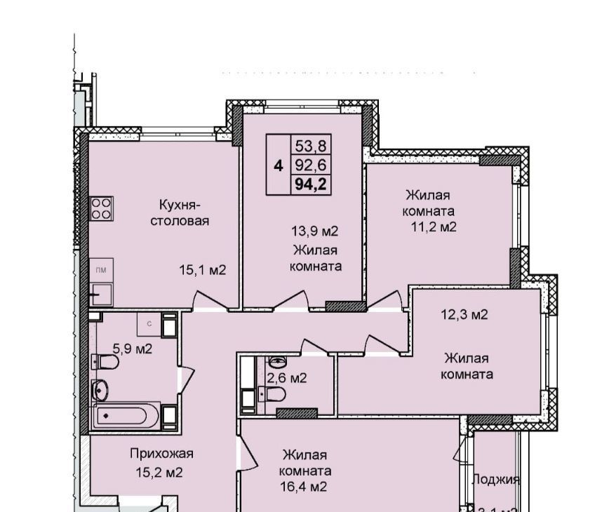 4-к кв. Нижегородская область, Нижний Новгород ул. Первоцветная, 1 (91.2 м²)