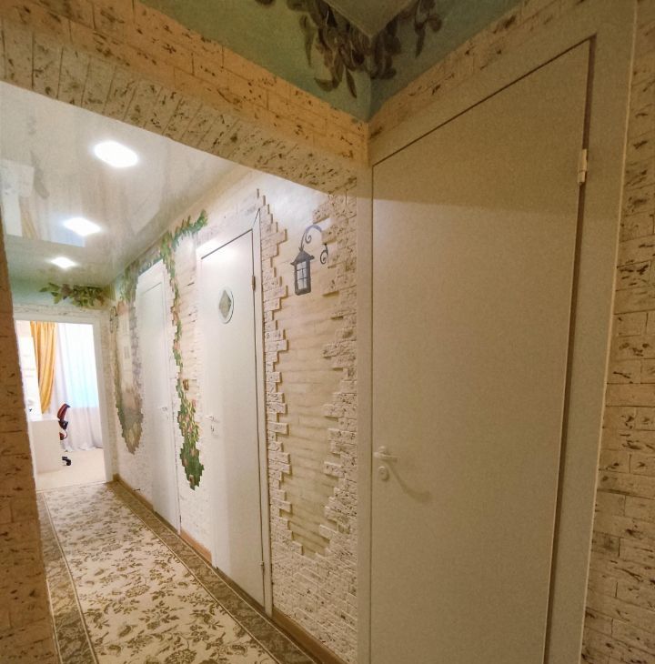 окна пластиковые; на полу коммерческий линолеум; ванная в кафеле, чугунная ванна 170 см; в санузле на полу плитка, на стенах пластиковые панели; в комнатах выровнены полы; в спальне и детской утеплены стены.