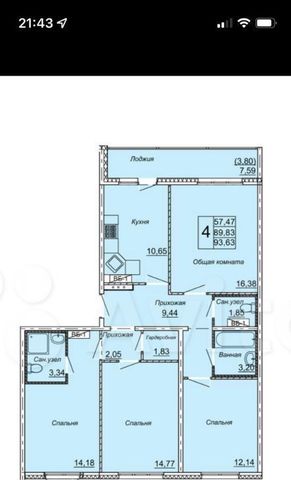 4-к кв. Нижегородская область, Нижний Новгород Вязниковская ул., 39 (90.3 м²)