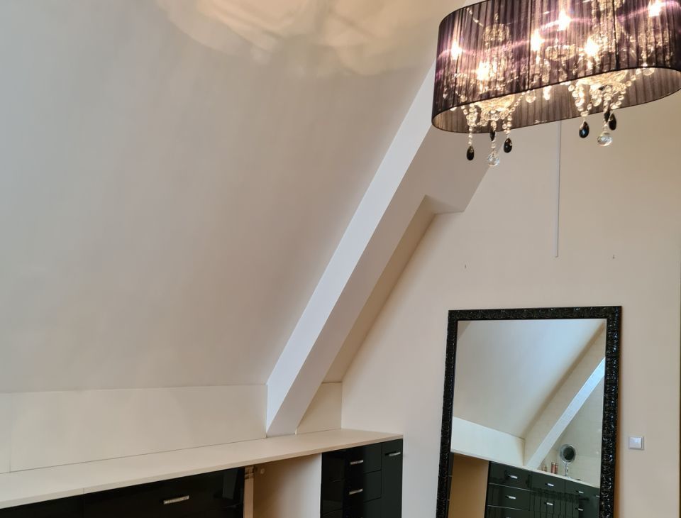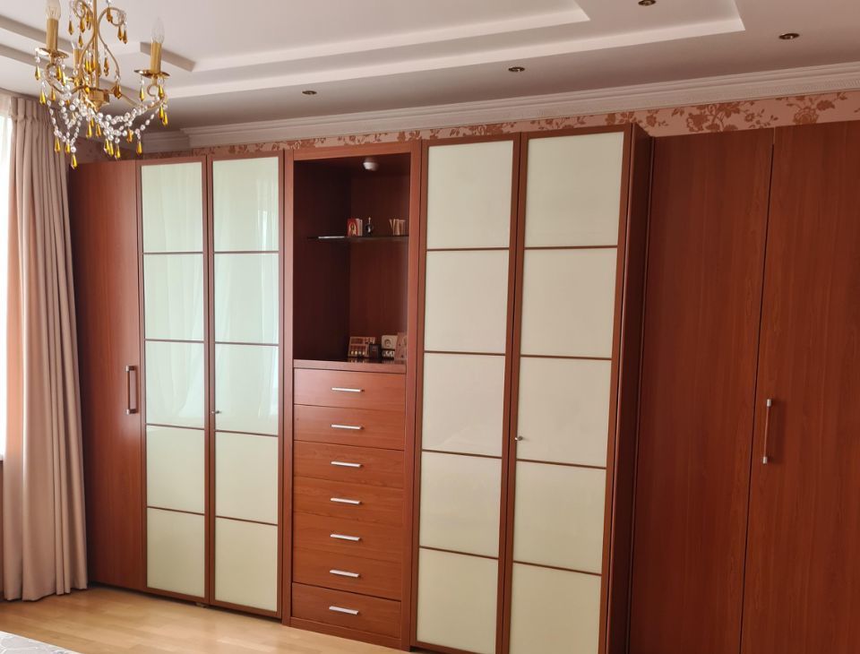 Гардеробная со встроенным шкафами добавляют дополнительно пространство для хранения.