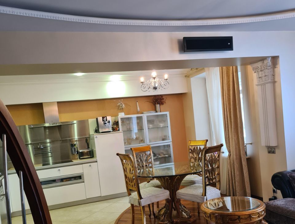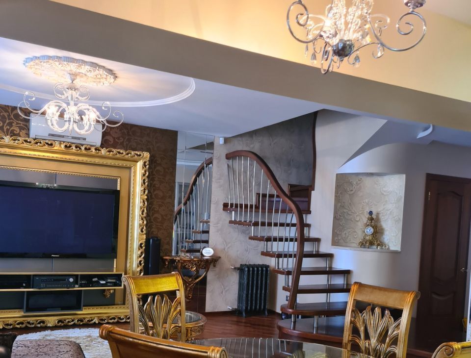 предлагаем к продаже двухуровневую просторную квартиру с евро ремонтом, 2010 году сделан ремонт по дизайнерскому проекту, пятикомнатная квартира, все комнаты изолированы, два санузла, что обеспечивает комфорт и приватность. Из окон вид на тихий закрытый двор и на противоположную сторону.