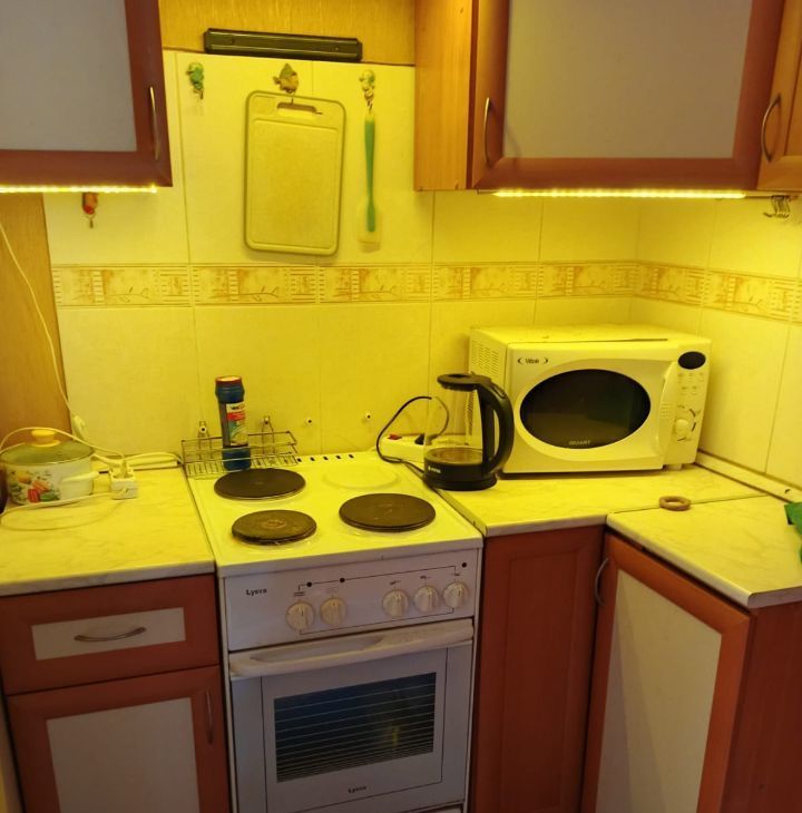 В комнате своя мини кухня, диван, 3 шкафа, холодильник, компьютер стол , стол, телевизор и т.п.