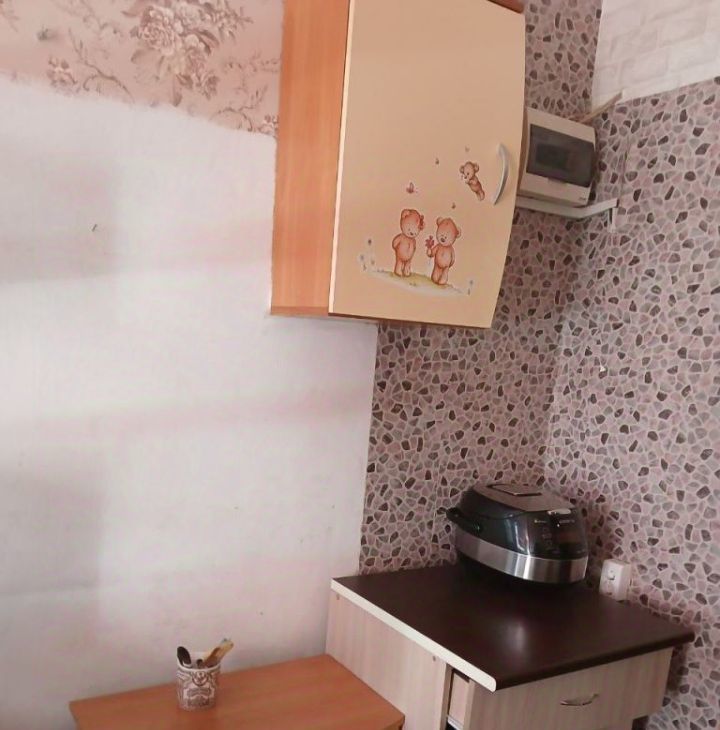 В комнате есть диван, стол, комод, мультиварка. Плита на общей кухне на двух человек. Места общего пользования в хорошем состоянии. Соседи приличные, уборка по графику.