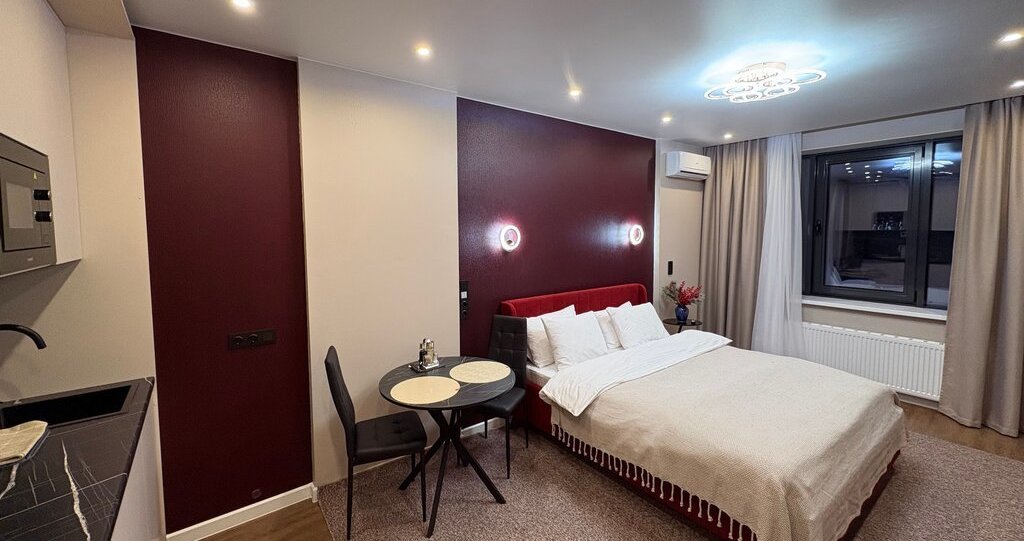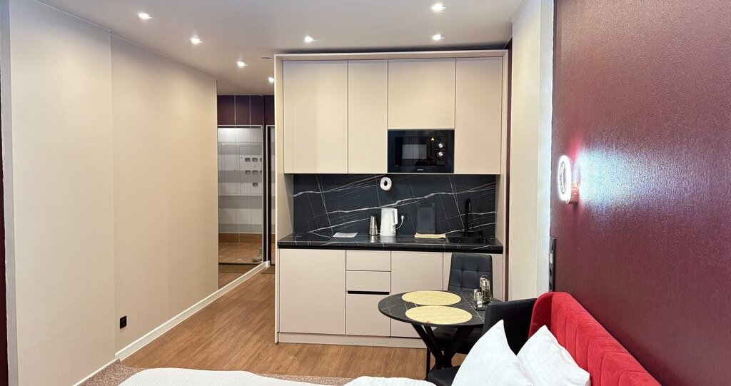 Удобная развязка и все необходимое в шаговой доступности. В апартаментах есть все для проживания. Так же в комплексе каждую неделю проходит уборка. На территории есть охрана, парковка и все необходимое для комфортного проживания. Могу предложить 7 разнотипных апартаментов по разному формату.