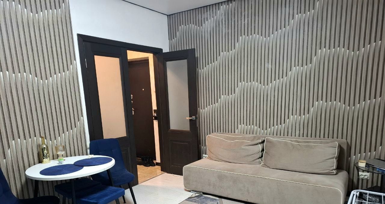 Сдам уютную квартиру студию на длительный срок.Квартира расположена в современном жк ,рядом с домом остановка общественного транспорта ,продуктовые магазины,школы,детсады.В квартире есть вся необходимая мебель и техника,проведен вай-фай .В оплату включены ЖКУ и счетчики ,так же интернет .Залог 40 000