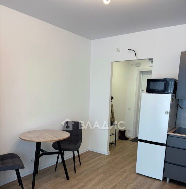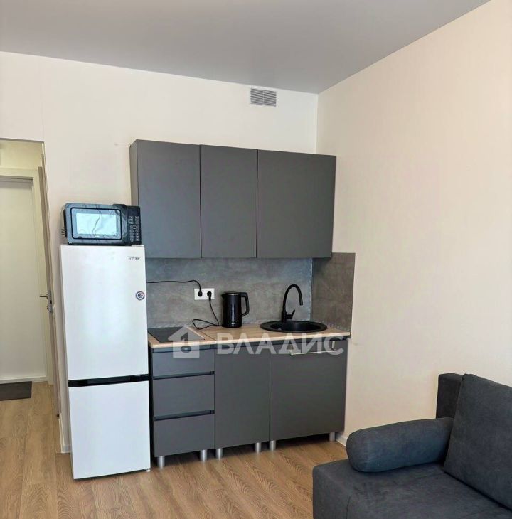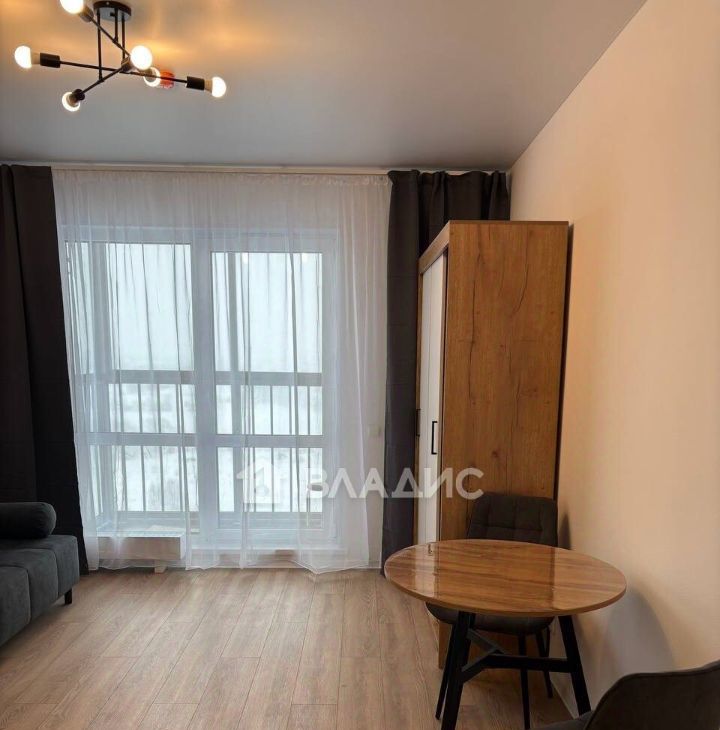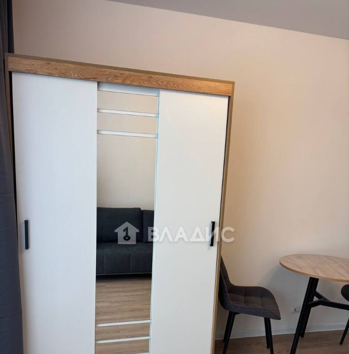 Общая площадь — 20 кв. м, высота потолков — 2,4 м. В студии есть балкон, окна выходят на улицу. Квартира с евроремонтом, полностью готова к заселению.