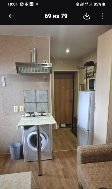 В квартире сделан косметический ремонт, что создаёт приятную атмосферу для проживания. Обстановка включает в себя всё необходимое: холодильник, телевизор и стиральную машину. Кухня компактная, площадью 2 кв.м, но всё необходимое для приготовления пищи под рукой. Ванная комната оснащена ванной, а окна квартиры выходят во двор, что обеспечивает тишину и уют. Есть балкон, где можно отдохнуть на свежем воздухе.