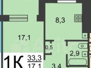 1-к кв. Нижегородская область, Нижний Новгород ул. Академика Баха, 13 (30.4 м²)