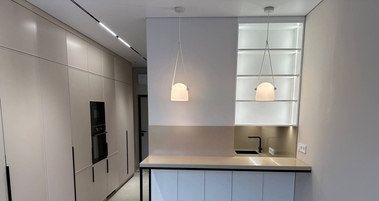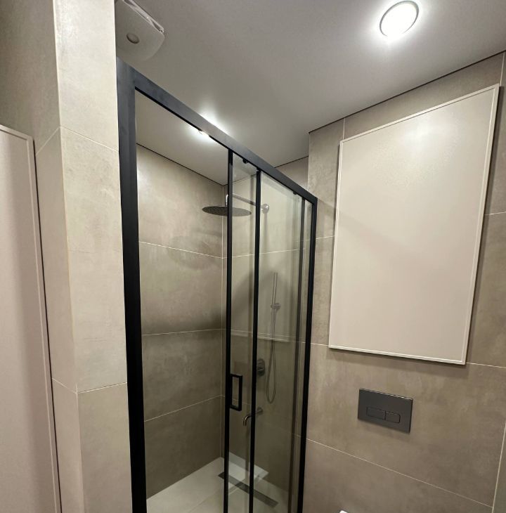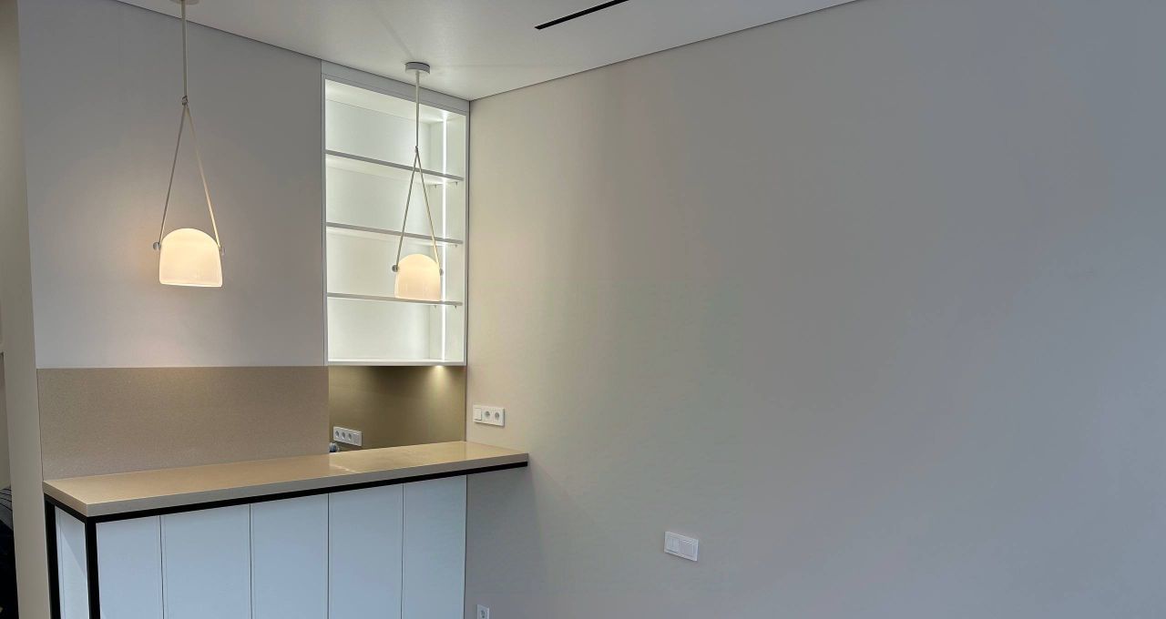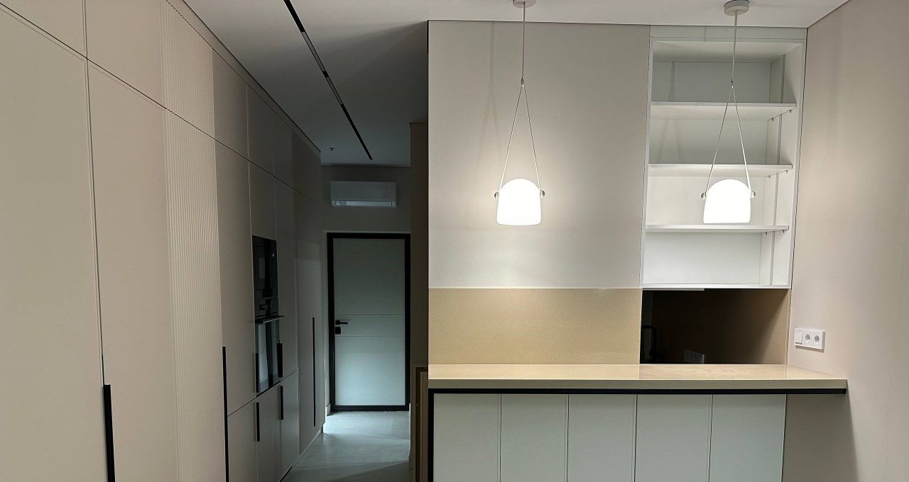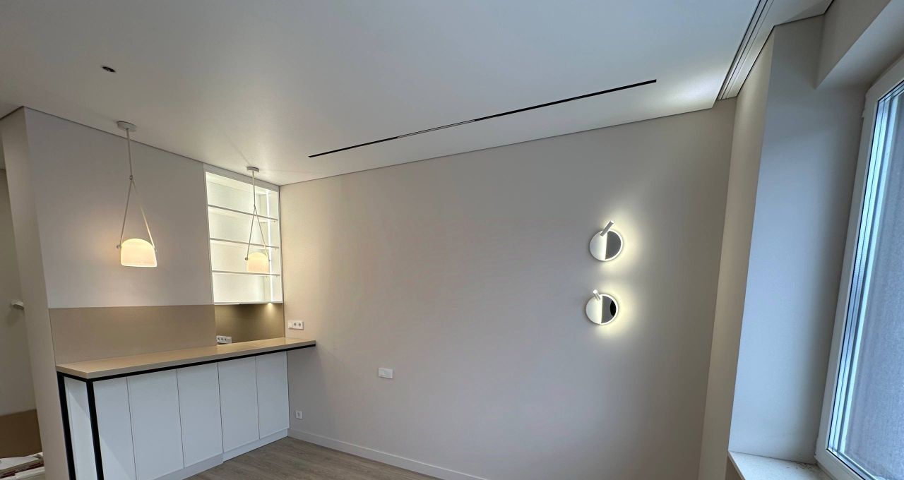 Установлена современная техника: кондиционер, холодильник, посудомоечная и стиральная машины. Просторный совмещенный санузел оборудован душевой кабиной. Окна выходят на улицу, что обеспечивает хорошее естественное освещение.