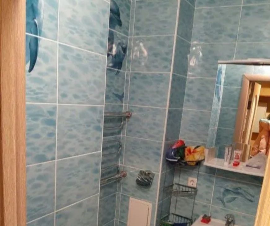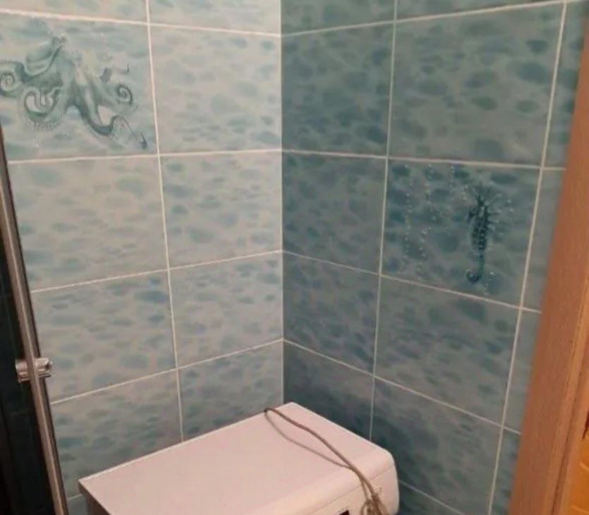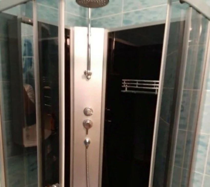 Санузел - совмещенный, он облицован современной плиткой, в нем - душевая,кабина.