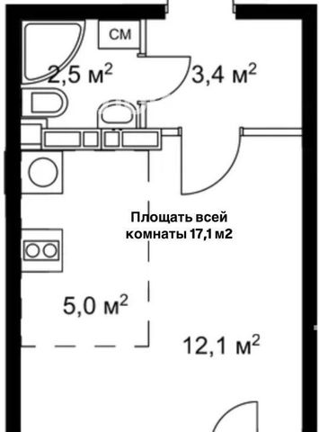Площадь квартиры- 27 м. Общая площадь комнаты- 17 м, комната очень просторная и светлая, спокойно подойдет для проживания как одного, так и двух людей.