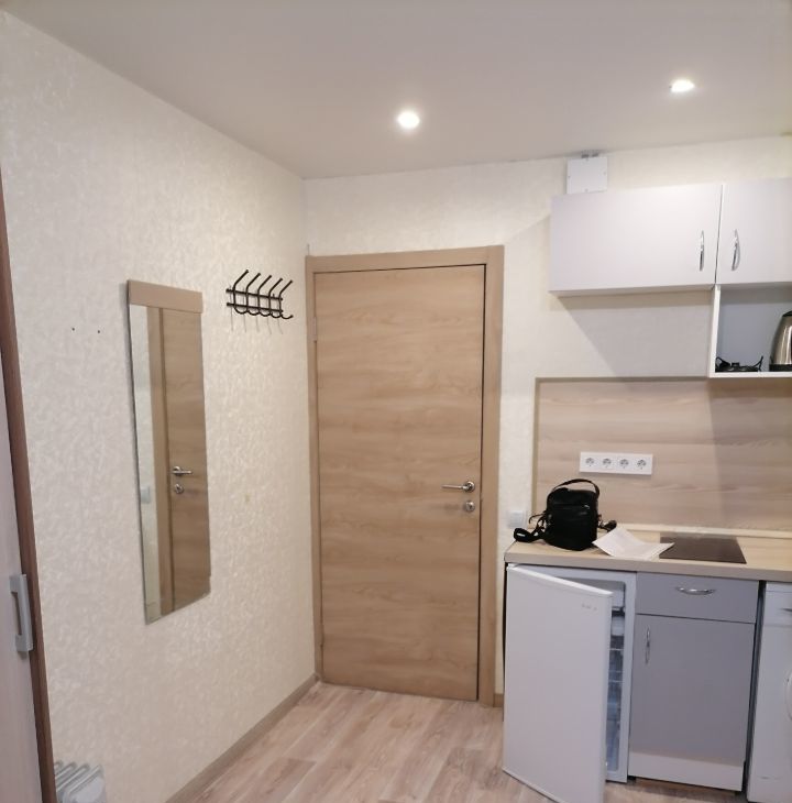 В студии сделан ремонт, есть вся необходимая для проживания мебель, быт.техника и посуда; фотографии актуальные;