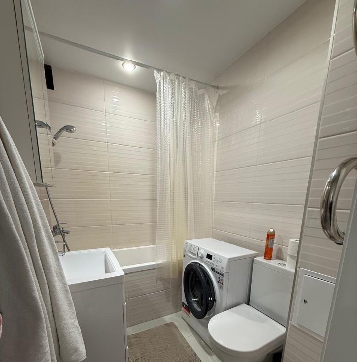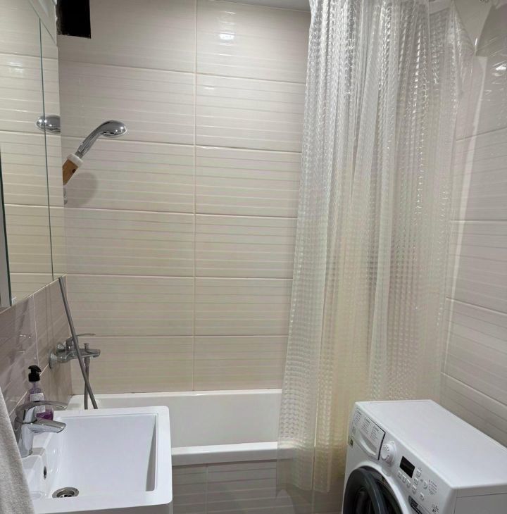 Из бытовой техники: варочная панель и духовка, микроволновка, чайник, стиральная машина, телевизор. На кухне установлен фильтр для питьевой воды. Проведен Wi-Fi.