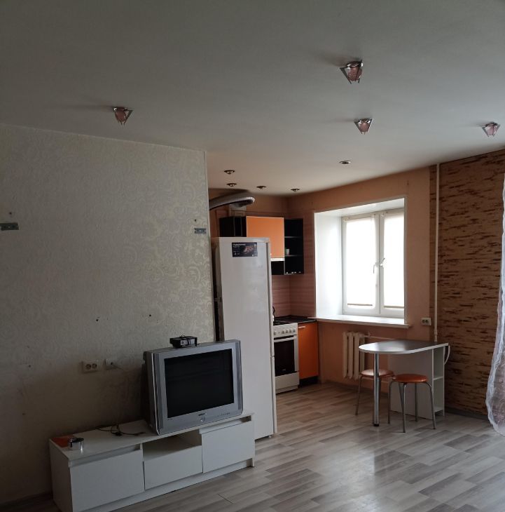 Уютная однокомнатная студия ,на 3 ем этаже 5 тиэтажного кирпичного дома ,хороший ремонт мебель в наличии,соседи тихие ,рядом с домом магазины , удобная транспортная развязка.