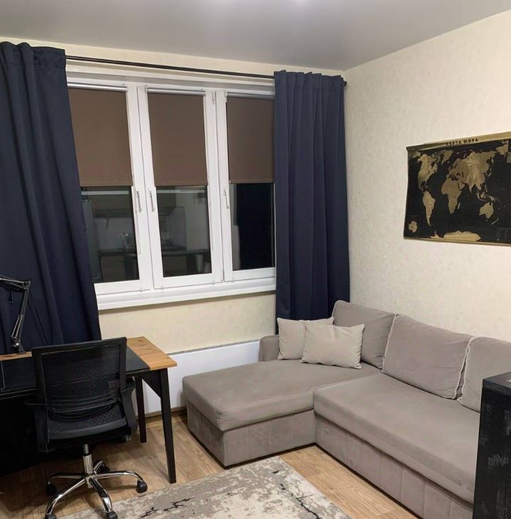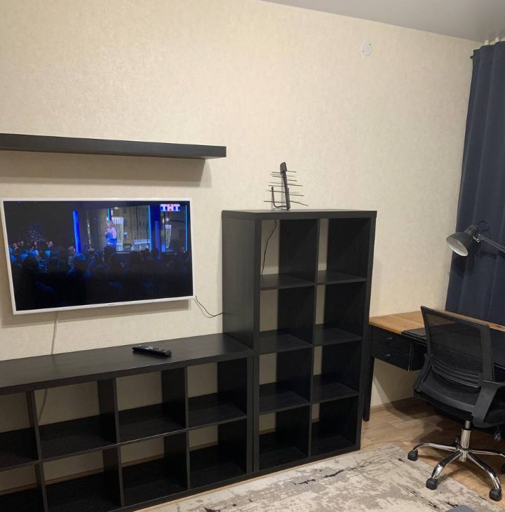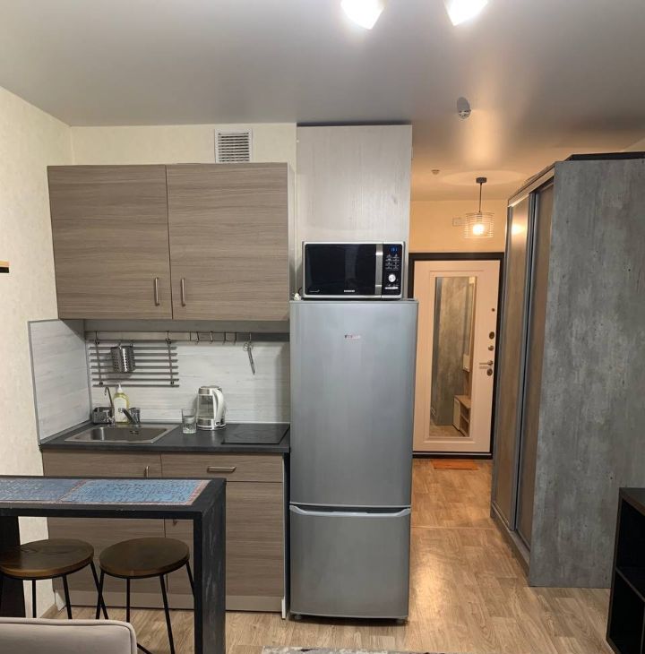 Квартира полностью меблирована и готова к проживанию: раскладной угловой диван, письменный стол с креслом, барная стойка, шкаф-купе, стеллаж, прихожая, варочная панель, микроволновка, холодильник, стиральная машина, телевизор. Интернет проведён, договор с провайдером оформляется арендатором. Ремонт свежий, мебель в хорошем состоянии.