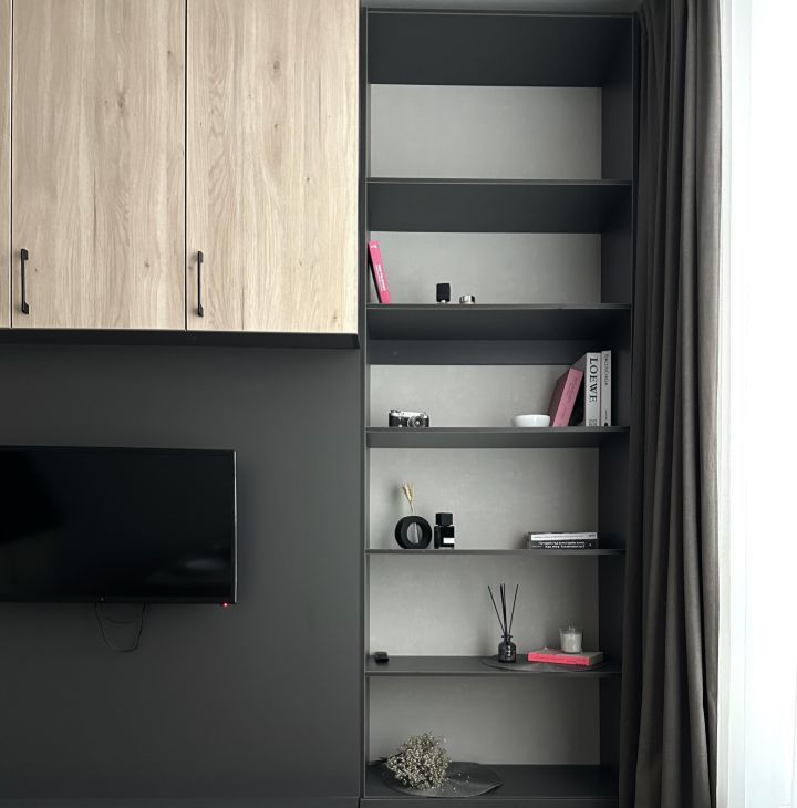 Корпусная мебель с большим количеством мест для хранения.