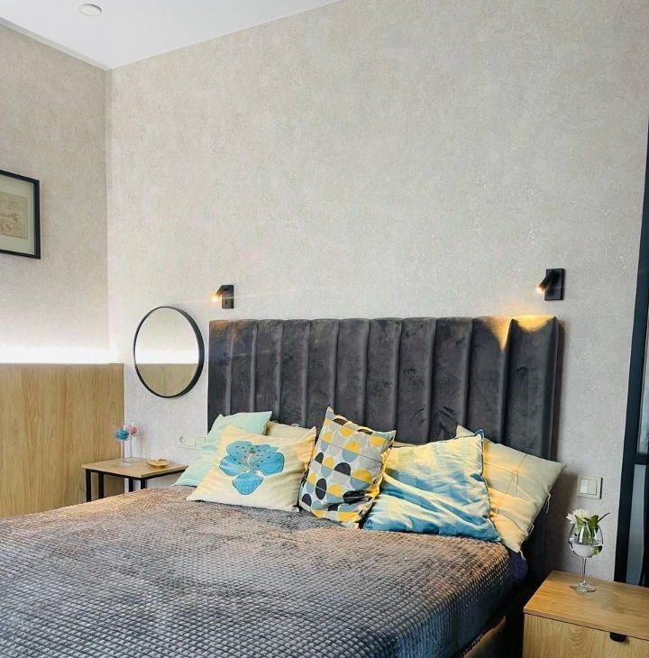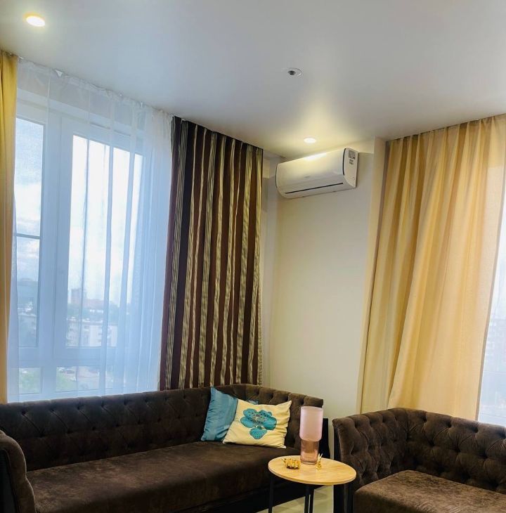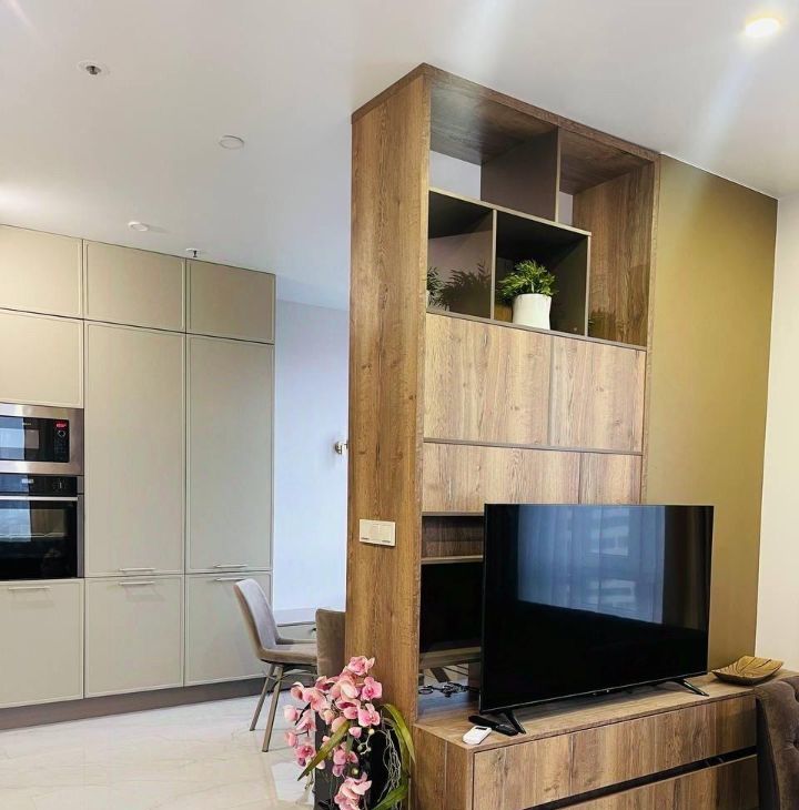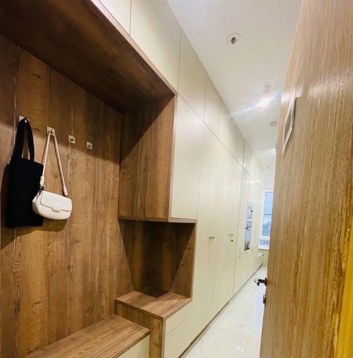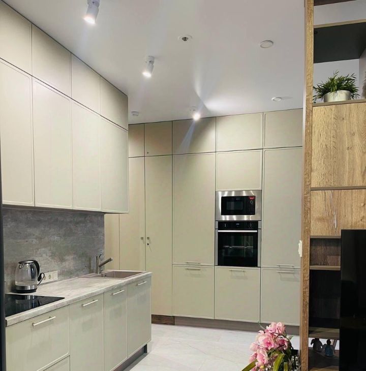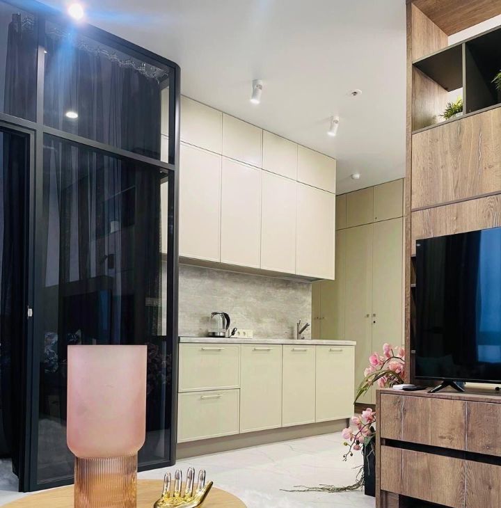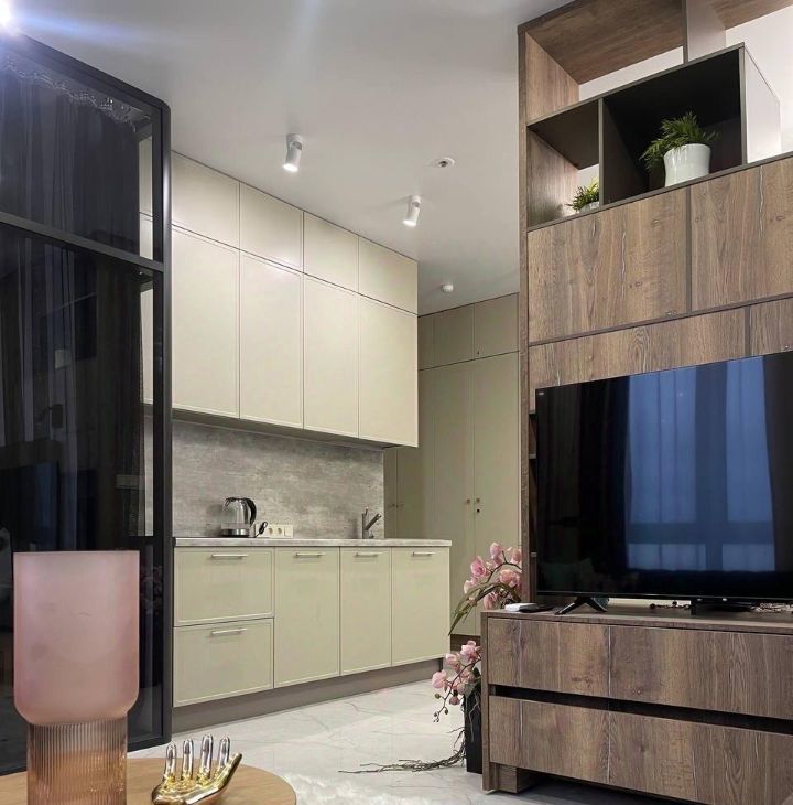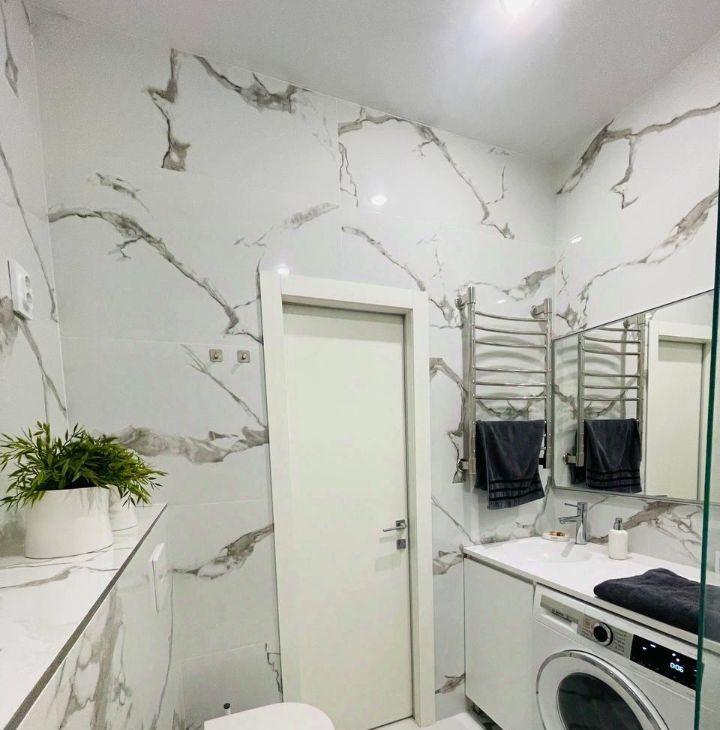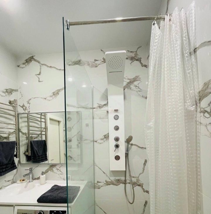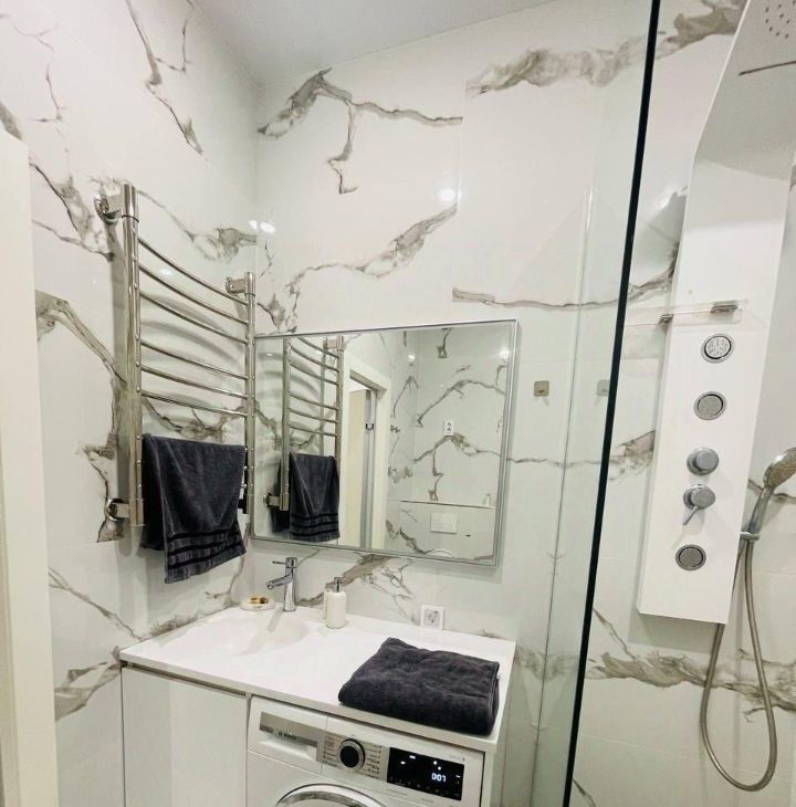 Bosch, установлен фильтр для воды, кондиционер, фен, пылесос, утюг, гладильная доска, антимоскитные сетки на окнах, огромный плоский телевизор Xiaomi 55*, водонагреватель. В сан. узле современный душ, унитаз, зеркало с подсветкой и полотенцесушитель, белый мрамор, перегородка и раковина сделаны на заказ.