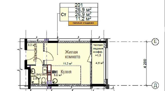 Студия Нижегородская область, Нижний Новгород ул. Новокузнечихинская, 8 (26.5 м²)