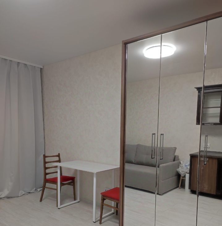 Сдаю просторную, очень теплую студию в новом доме 2023 года постройки. В квартире выполнен качественный ремонт в светлых тонах. Мебель и техника новые. Очень вместительный зеркальный шкаф для одежды, раскладной диван, кухонный гарнитур. Дом находится в пешей доступности от ТЦ Лента, Фантастика. Остановка общественного транспорта в 5 минутах ходьбы. Показ в любое удобное для Вас время.
